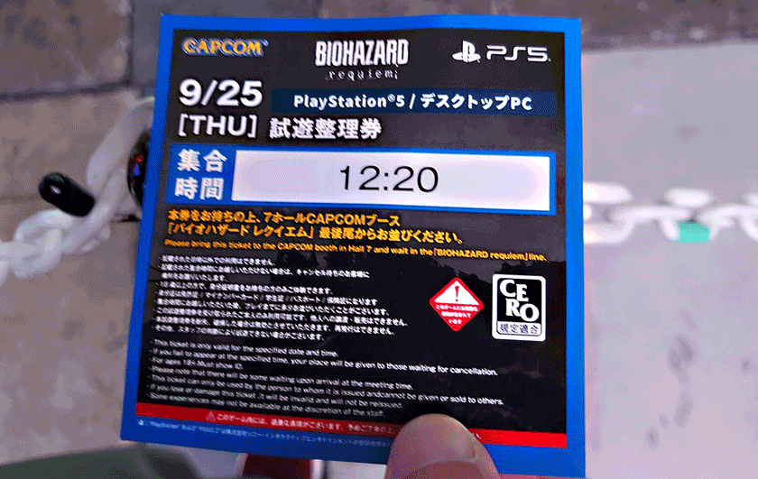 開場直後は、今回なんとしても整理券が欲しかったカプコンの『バイオハザード レクイエム』に直行。無事、12時20分の回の整理券をゲットしました。