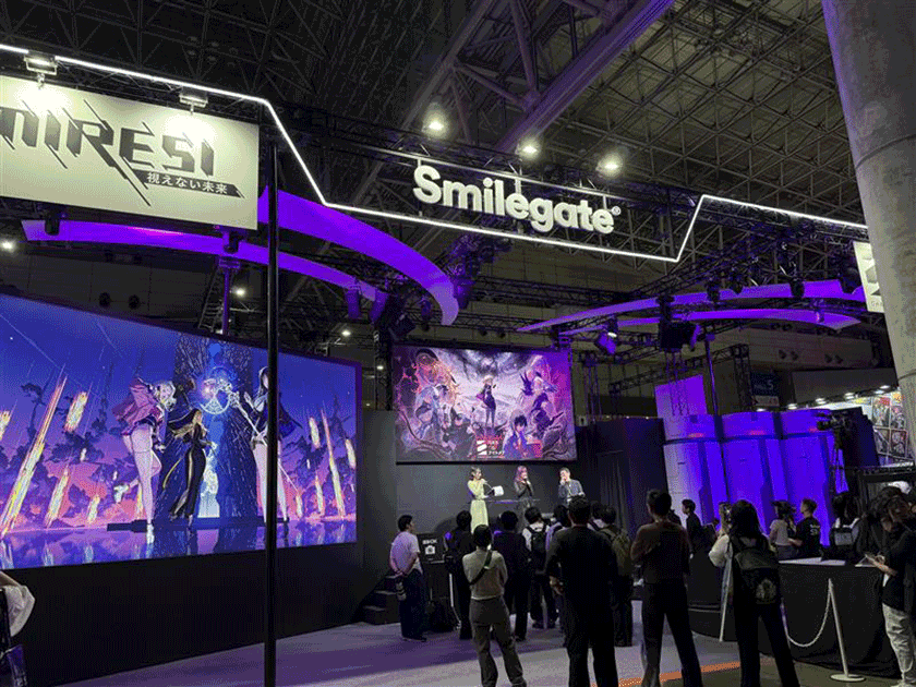 こちらは、スマイルゲートという韓国のゲーム会社。2025年10月に正式サービス開始する『カオスゼロナイトメア』と2026年配信予定の新作RPG『MIRESI:視えない未来』の2タイトルを、まだ発売前にも関わらず大規模ブースで出展するという気合いの入れようでした。